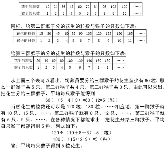 分析與解 由題中給出的條件可以知道,給三群猴子分的花生總數(shù)是一定的。